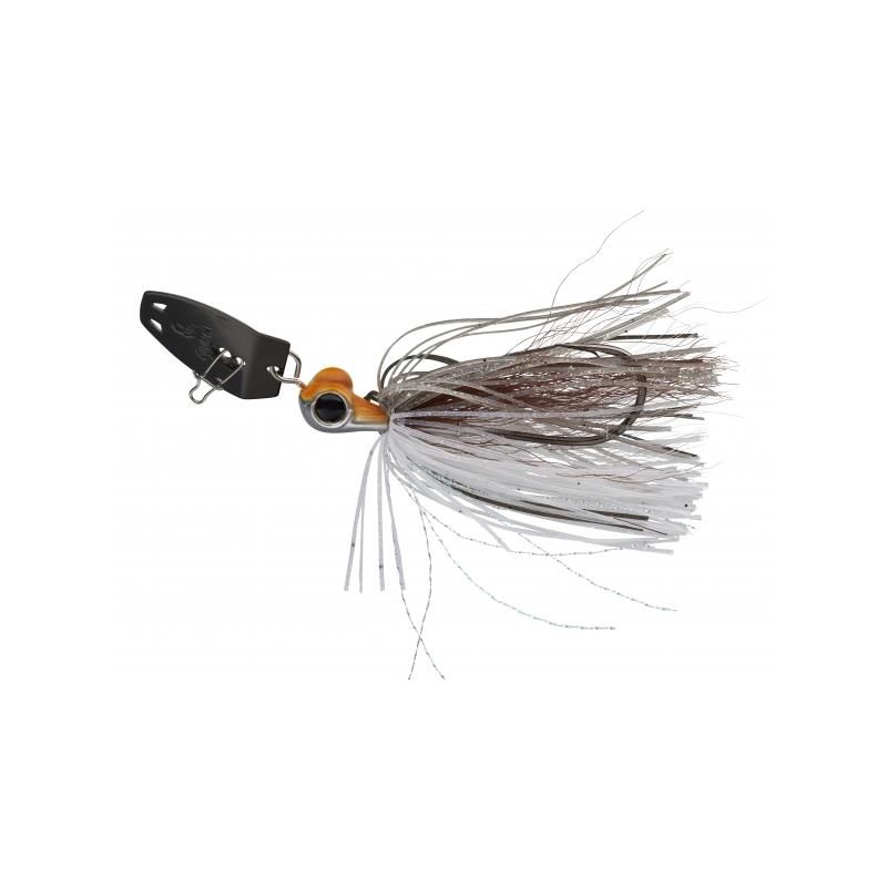 Ce chatterbait Gunki a été dessiné en s’inspirant des batraciens qui peuplent nos cours d’eau. Il dispose d’un signal ‘oeil’ très présent, particulièrement hypnotisant dans l’eau, qui cible idéalement l’attaque des poissons. Doté d’une palette de taille volontairement réduite, il émet des vibrations puissantes et ajustées, adaptées aux endroits surpêchés. Comme tous les chatterbait, il conjugue de fort effets vibratoires (palette, jupe silicone volumineuse) et d’importants flashs lumineux (palette & oeil). Sa compacité, l’inclinaison de la palette et l’angle qu’elle forme avec le lest, font de lui un leurre de prospection linéaires ‘tout terrain’, adapté aux endroits encombrés. Un leurre particulièrement efficace sur les brochets, perches, black bass et silures! Lors de nos tests, associé avec un leurre souble V²IB comme trailer, il a fait des merveilles sur ces espèces! Fil Métallique, résistant aux coupures (brochet), pour la ligature de la jupe. Hameçon Mustad 4/0.