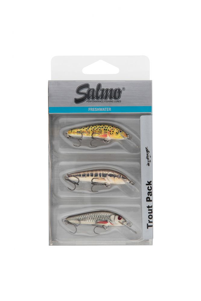 Contient trois leurres Salmo Minnow : 1 x Minnow 5 Trout Sinking, 1 x Minnow 5 Minnow Sinking et 1 x Minnow 5 Dace Floating