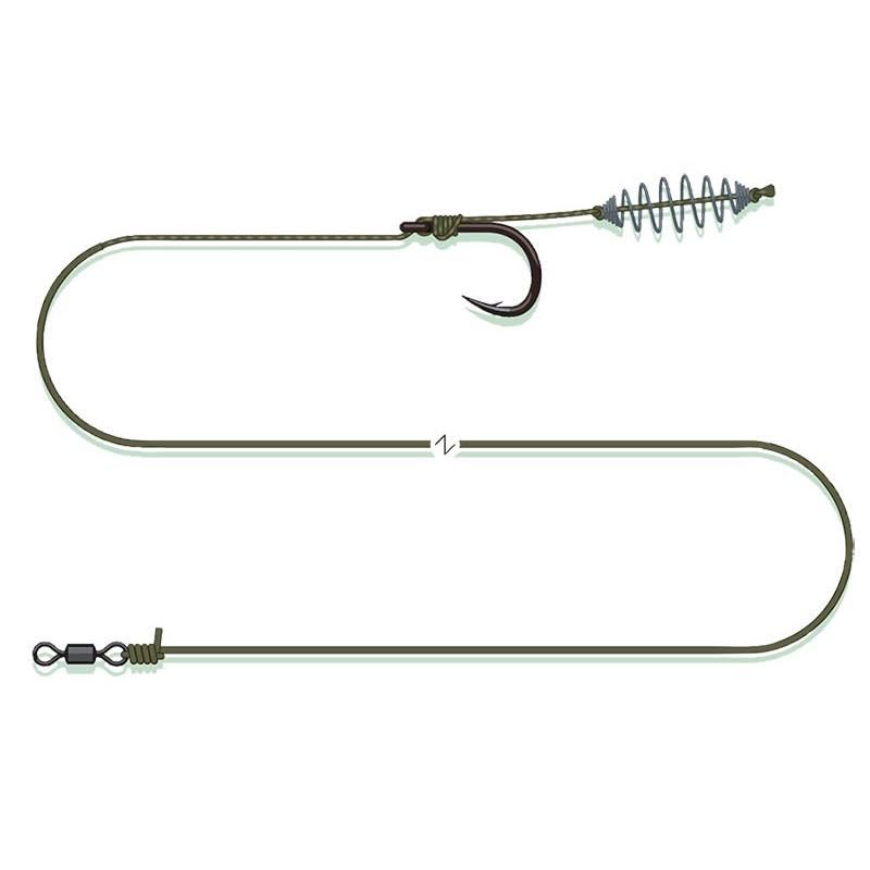 Un montage spécialement conçu pour être utilisé avec la pâte à pellets MADCAT. Il comporte une cage sur le cheveu, ce qui signifie que vous obtenez une diffusion lente de l’appât juste à côté de votre hameçon... Vous devez vérifier régulièrement le dispositif pour vous assurer que la pâte est toujours intacte, mais vous serez récompensé par plus de touches ! Equipé d’un bas de ligne gainé MADCAT.